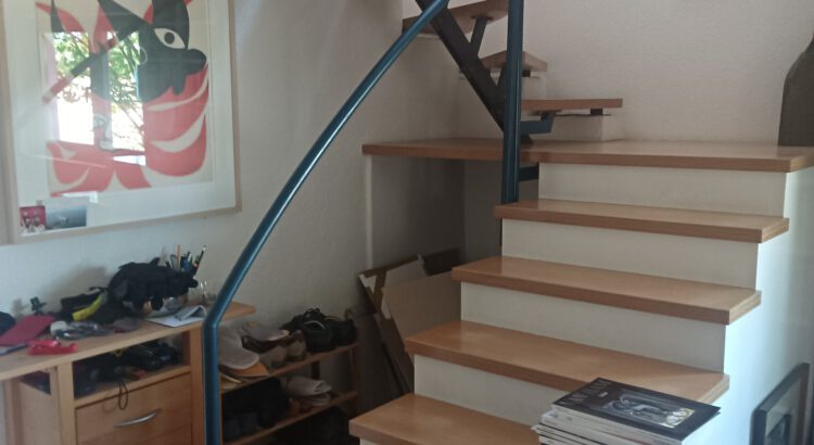 Im Innentreppenhaus wurde ursprünglich im oberen Bereich ein Geländer montiert, das für optische Akzente und grundlegende Sicherheit sorgte. Damals stand das Design im Vordergrund – die Funktionalität war ausreichend für die damaligen Bedürfnisse.